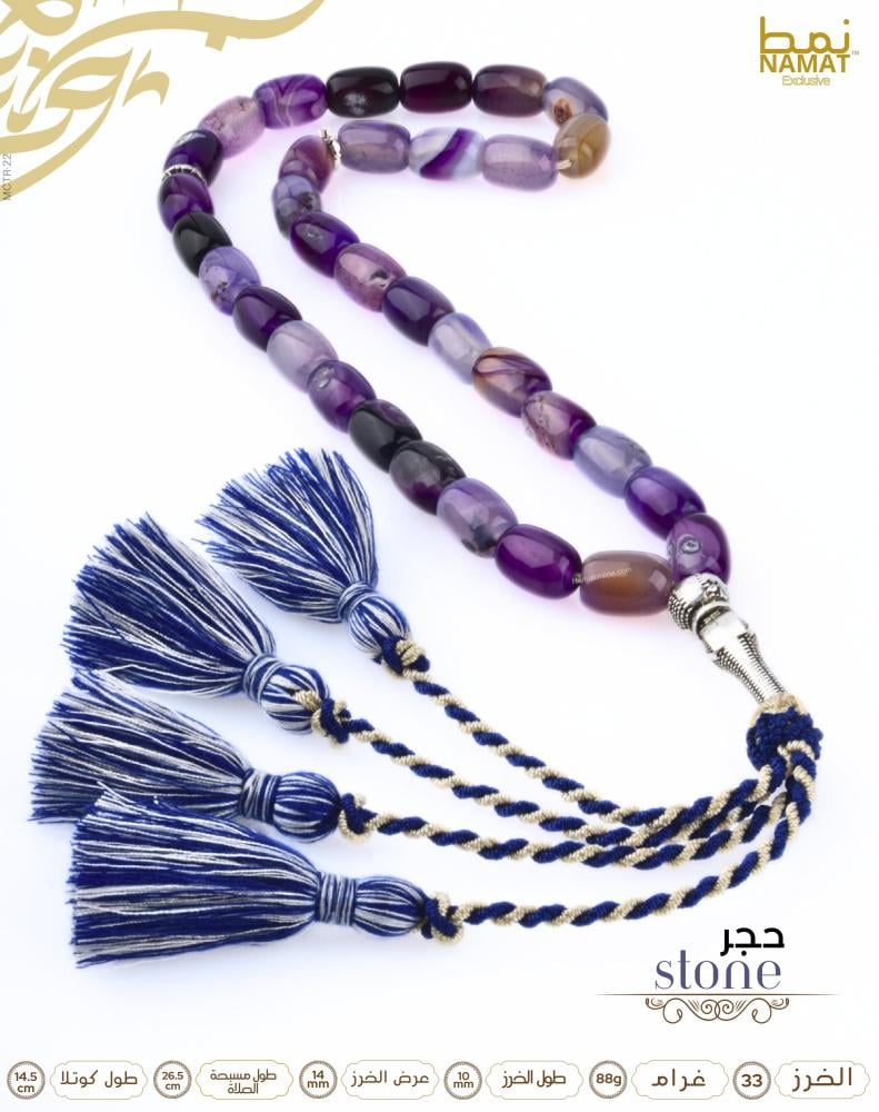 أحجار الجمشت الطبيعية 33 حبة مع شرابة قطنية مصنوعة يدويًا حصريًا