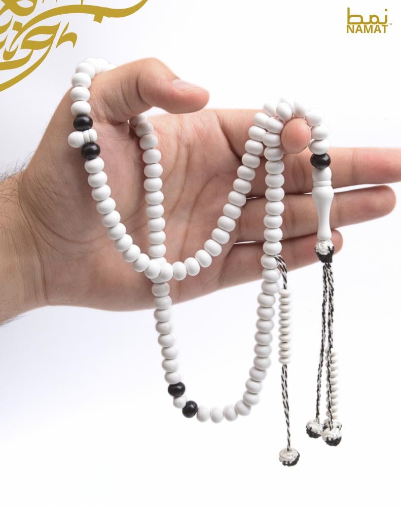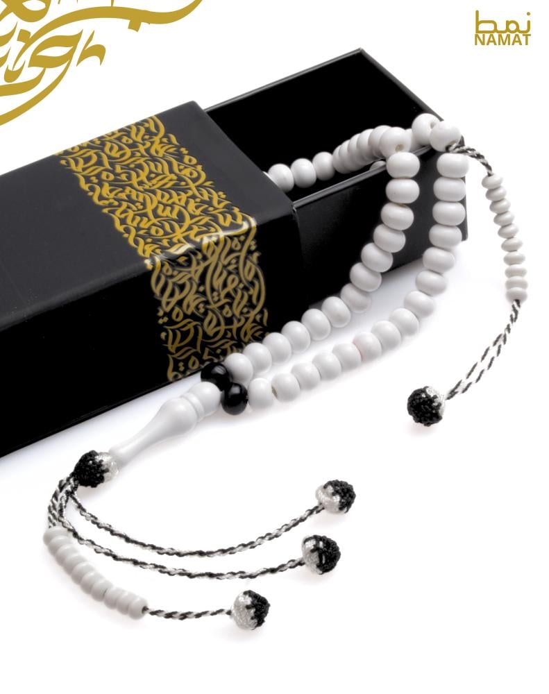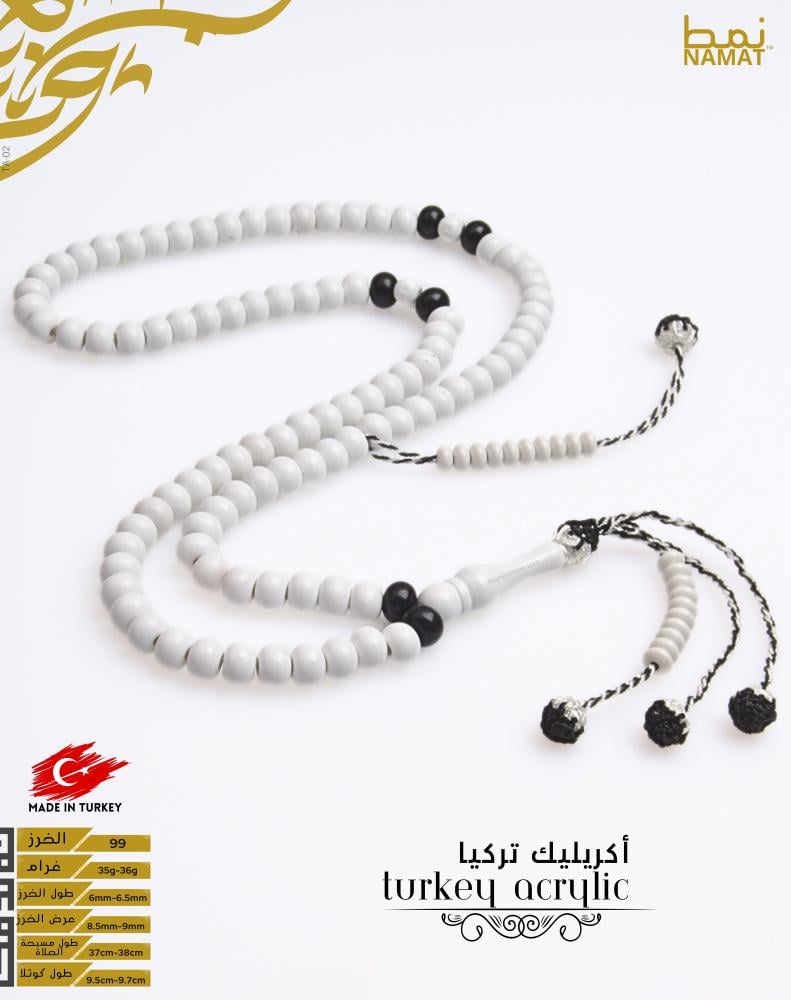 مسبحة بيضاء مصنوعة في تركيا 99 خرزة مع شرابة ملكية